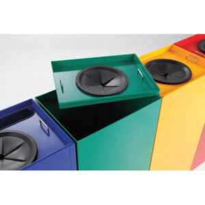 Slobodno odstranjiv poklopac s odgovarajućim otvorom za ubacivanje. Prikladni za razvrstavanje otpada u administrativnim zgradama, školama, uredima itd. Mogućnost opremanja naljepnicama s oznakama odgovarajuće vrste otpada.