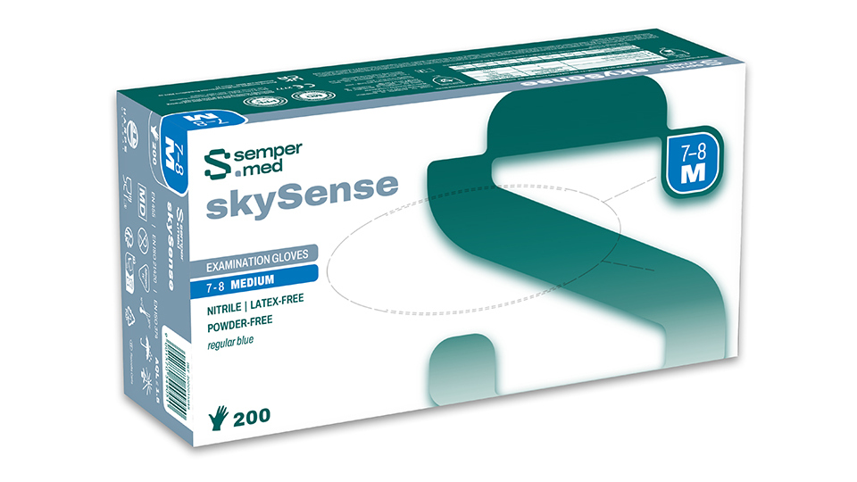 sempermed® skySense nudi plavu boju koja je vrlo tražena i nadopunjuje postojeće opcije boja unutar našeg portfelja laganih sempermed® rukavica za pregled.